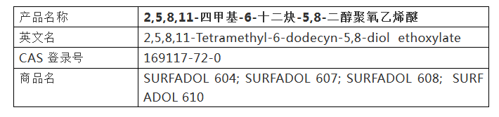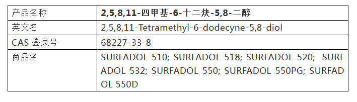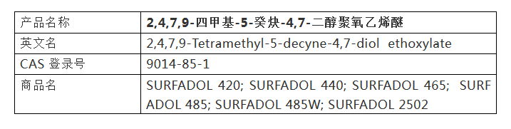 我司現(xiàn)在滿負荷生產(chǎn),可大量供應以下品種的炔二醇表面活性劑。如果您需要用于水性體系的潤濕劑、消泡劑或分散劑,歡迎來電詳談。